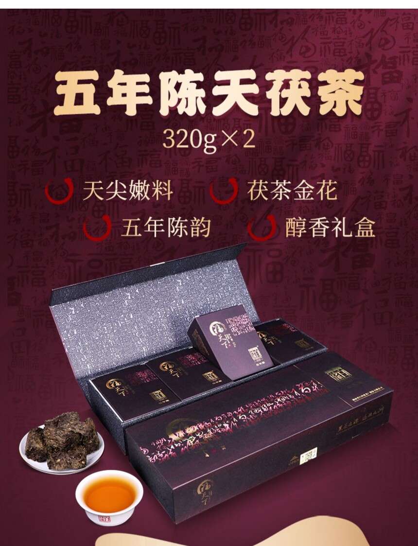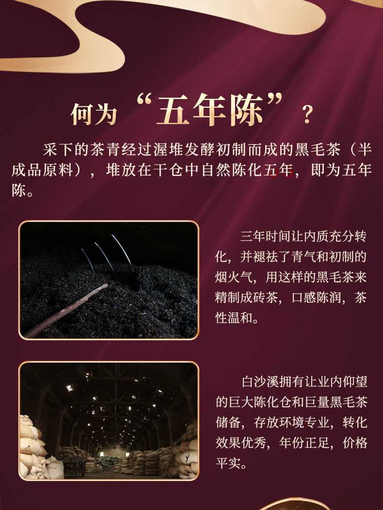 • 湖南正宗安化黑茶白沙溪五年陳福天下直泡320g盒