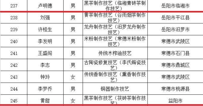 近期,湖南省文化和旅游廳發(fā)布《關于公布第五批省級非物質(zhì)文化遺產(chǎn)項目代表性傳承人的通知》,集團3人入選。其中,集團公司副董事長、總工程師吳浩人榮獲第五批省級非物質(zhì)文化遺產(chǎn)項目紅茶制作技藝(湖南工夫紅茶制作技藝)傳承人稱號;集團益陽茶廠質(zhì)管部經(jīng)理黃甜榮獲第五批省級非物質(zhì)文化遺產(chǎn)項目黑茶制作技藝(茯磚茶制作技藝)傳承人稱號;集團永巨茶業(yè)董事、總工程師盧明德榮獲第五批省級非物質(zhì)文化遺產(chǎn)項目黑茶制作技藝(臨湘青磚茶制作技藝)傳承人稱號。