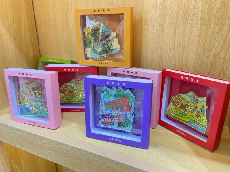 最吸睛的是一套茶文化冰箱貼:立春款印著采茶竹籃,立秋款畫著黑茶渥堆場景,每個(gè)冰箱貼背面都有二維碼,掃碼就能看對應(yīng)的節(jié)氣茶俗視頻。“這是把千兩茶制作技藝這些非遺,變成年輕人愿意帶回家的小物件。”博物館工作人員一邊擺貨架一邊說。這些帶著湖湘茶韻的文創(chuàng),不僅好看,更成了茶文化的“移動宣傳員”,不少茶友一買就是一套。