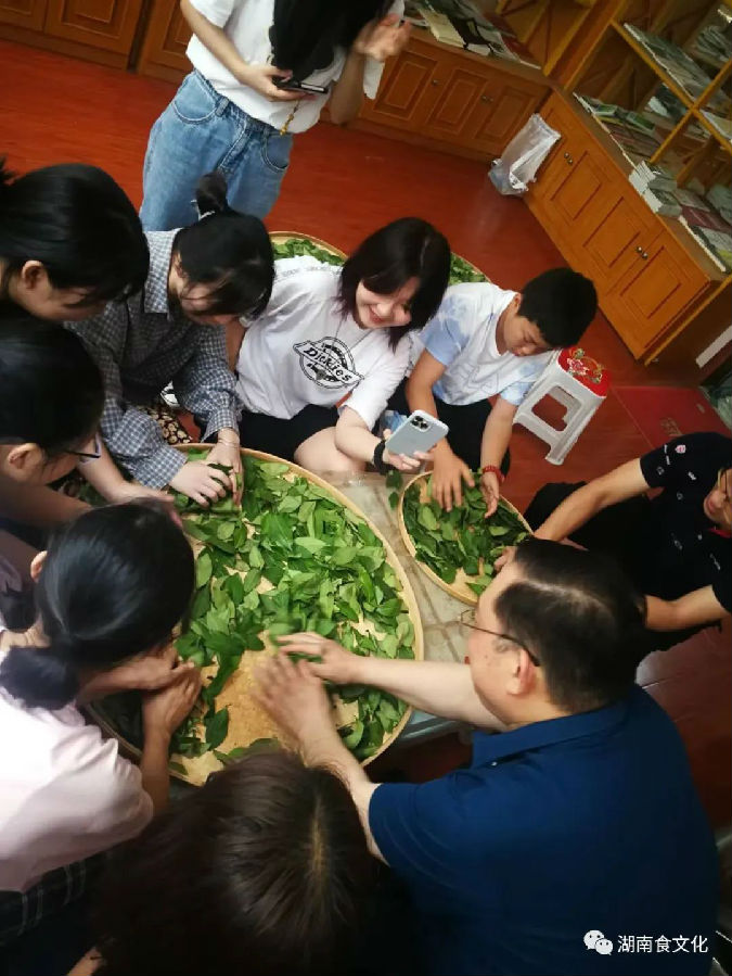 在今年的“中國(guó)文化和自然遺產(chǎn)日”上,湖南省級(jí)非物質(zhì)文化遺產(chǎn)代表性項(xiàng)目——湖南工夫紅茶制作技藝,首次專門面向青少年學(xué)生開放。湖南生物機(jī)電職業(yè)技術(shù)學(xué)院、湖南師大附中雙語學(xué)校、長(zhǎng)沙市砂子塘小學(xué)等學(xué)校的學(xué)生參加了湖南工夫紅茶的體驗(yàn)制作。一盤盤綠油油的茶葉,吸引了大學(xué)生、中學(xué)生和小學(xué)生們的好奇。