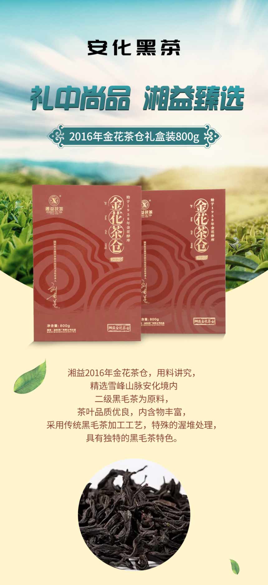 湖南正宗安化黑茶湘益金花茶倉201..